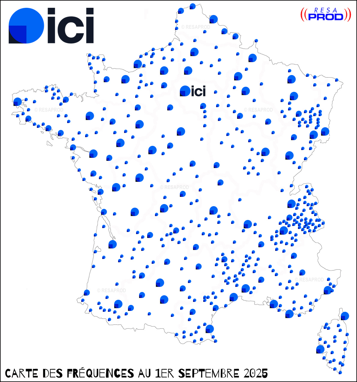 Les 484 fréquences des 43 antennes locales ICI (ex. France Bleu) (catégorie F)